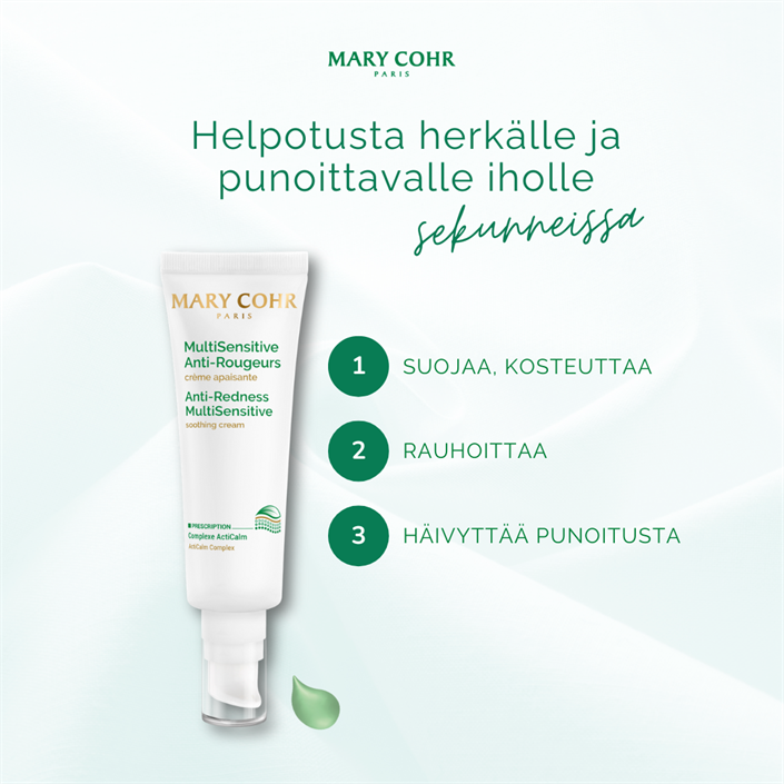 Ihon ulkonäköä kaunistavan vaikutuksen lisäksi voide hoitaa punoittavaa ihoa vaikuttaen ihoärsytyksen syihin ja vähentäen tätä kautta ihon oireilua.